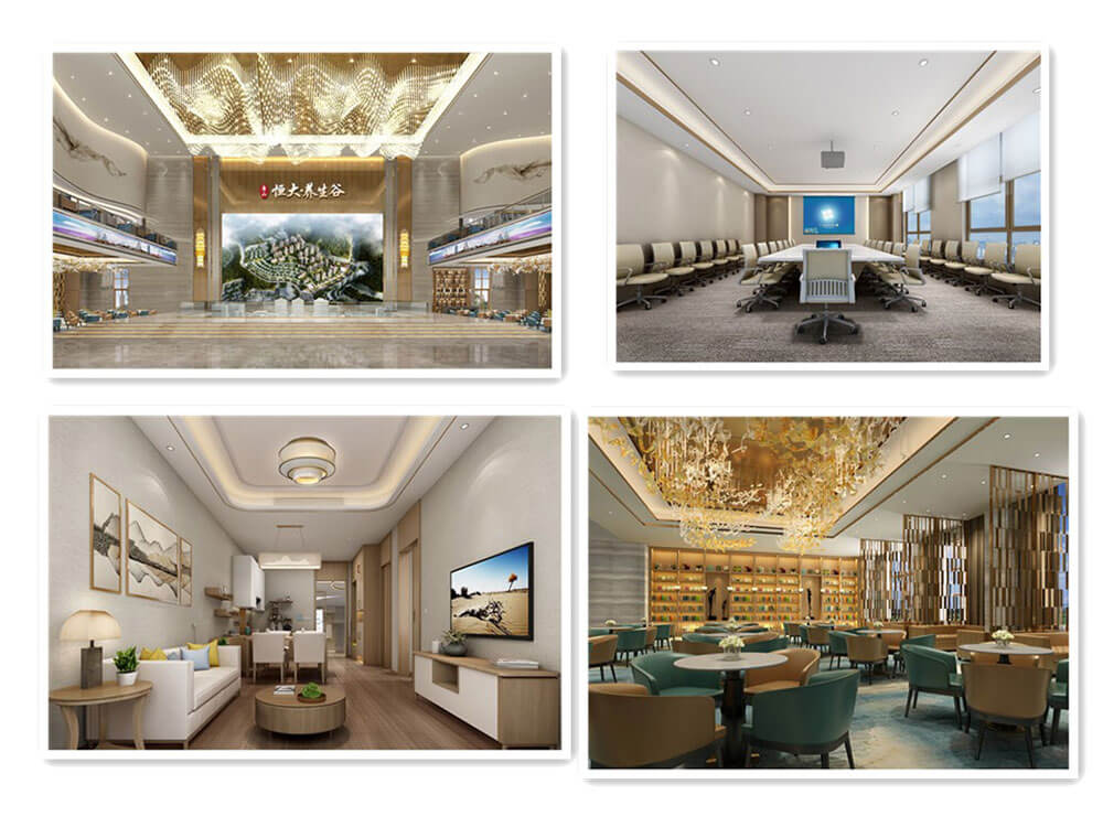 主要作品:南京恒大養生谷銷售中心、鄭州恒大養生谷銷售中心、唐山恒大養生谷銷售中心、茂名金源盛世銷售中心樣板間、茂名宏豐新城銷售中心