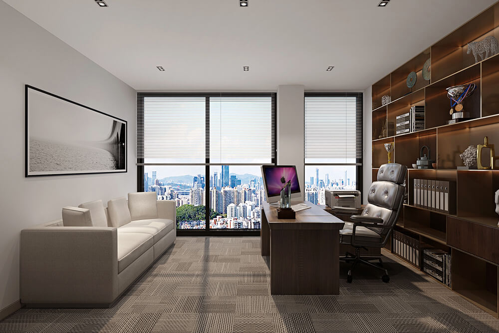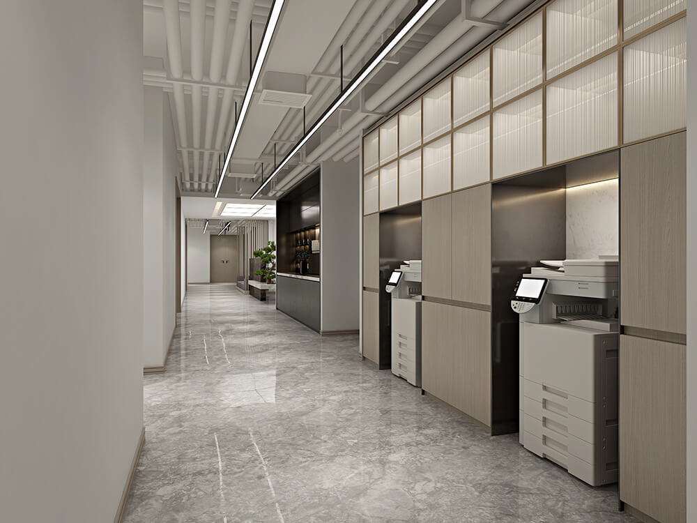 本案定位為現代簡約風格,整體硬裝以黑白灰作為主色調,運用暖木色作為主軸,讓整體空間更有溫馨愜意的舒適感,顛覆人們對于工作場域冰冷生澀的刻板印象,簡潔而利落的設計讓空間更為寬廣通透,形塑現代風格之韻味。玻璃隔斷采用溫潤木質結合簡潔明亮的白色透明玻璃,即增添了室內通透性,也增添了空間的色彩溫度,特意以不規則間距的分隔,展現錯落有致之美,使得空間有著豐富多元的肌理樣貌,不因同一材質而枯燥無味。開敞的工作空間,激發員工的互動性和創造力,增加員工的企業自豪感和歸屬感。