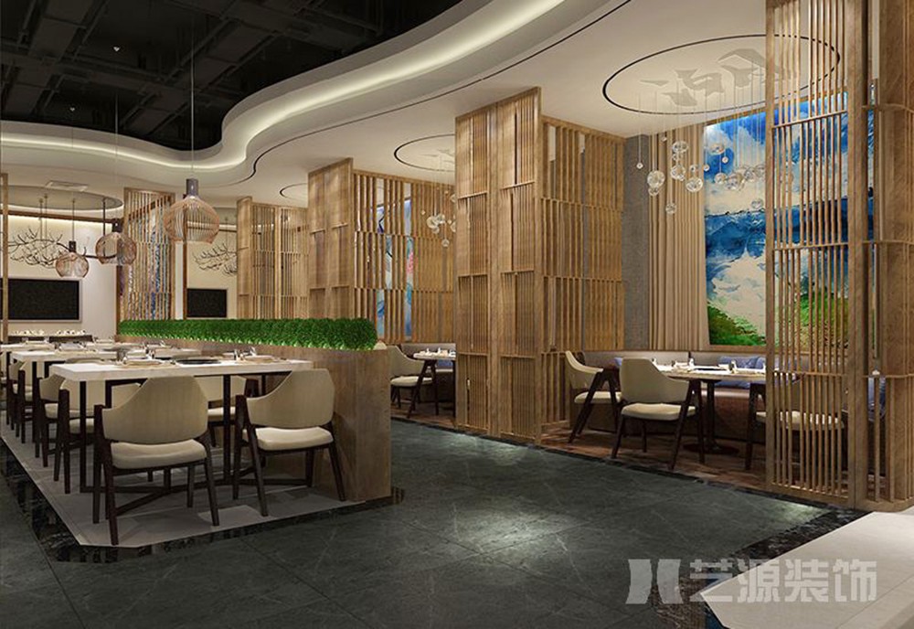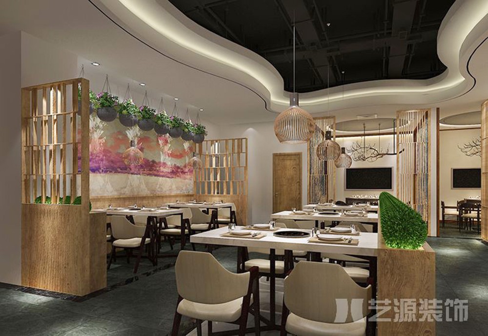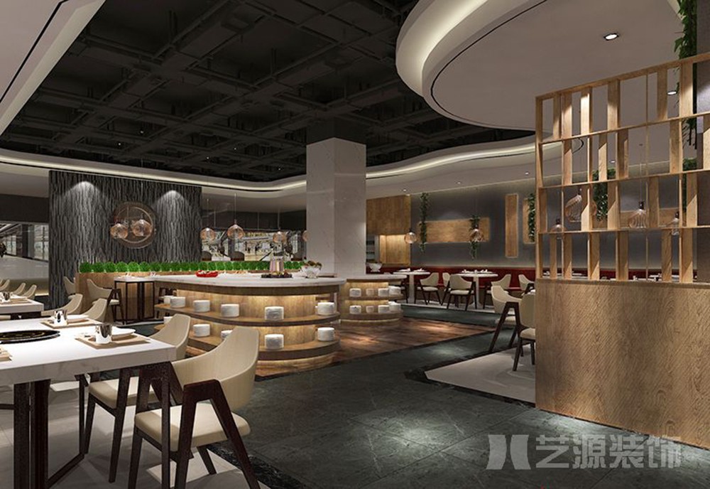 設計分析:潮汕牛肉火鍋近幾年來已經火遍大江南北,幸福園四季牛肉火鍋設計時打破傳統餐飲裝修風格,運用當代潮流趨勢的明檔設計,使過路的消費者能隨時看到廚師們精彩的廚藝,昭示性強,促進人們上門消費。